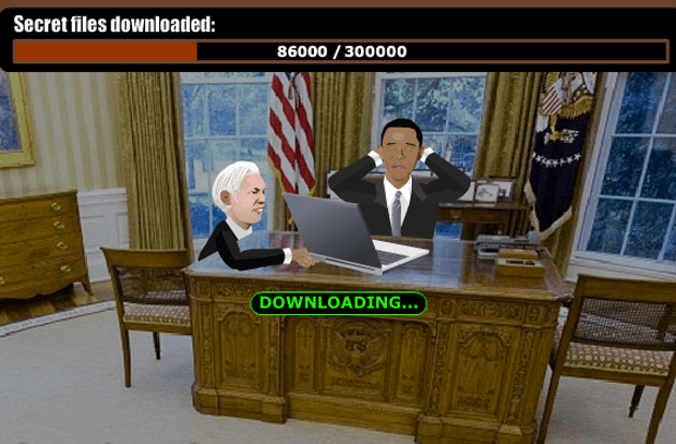 Und endlich ist es da. Das Spiel der Spiele. Auch Du kannst Julian Assange sein und Präsident Obamas Laptop Geheimnisse entreißen. Paß aber auf, daß Du nicht ungeschützten Sex mit Blondies aus Schweden hast.