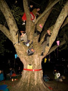 Und diese sechzehn Bäume, Retter der Welt, werden nun von der bösen Bundesbahn und ihren korrupten Unterstützern entfernt. Die Welt wird zusammenbrechen. Wir werden alle sterben. Über früher oder länger.