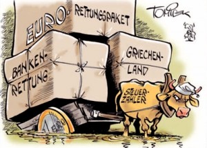 “… der im Vergleich zu Japan nur ungefähr ein Viertel mal so stark verschuldete spanische Staat zahlt den dreifachen Zinssatz. Griechenland, das nicht einmal doppelt so hoch verschuldet ist wie Deutschland, musste mit 276 Basispunkten im Vergleich zu Deutschland fast den doppelten Zissatz für seine Staatsschulden aufbringen. Das noch stärker verschuldete Italien hingegen hatte nur 82 Basispunkte über dem deutschen Zinssatz zu schultern. Das lässt nur den Schluss zu, dass selbst im Urteil der ‘Märkte’ öffentliche Schuldenstand und Zinsdifferenzen viel weniger miteinander zu tun haben, als allgemein unterstellt.”