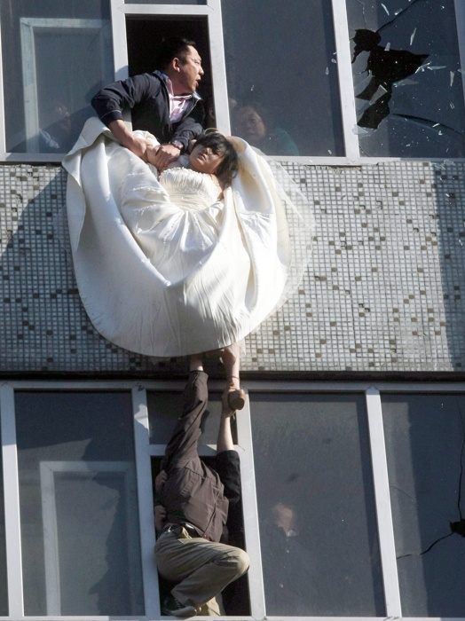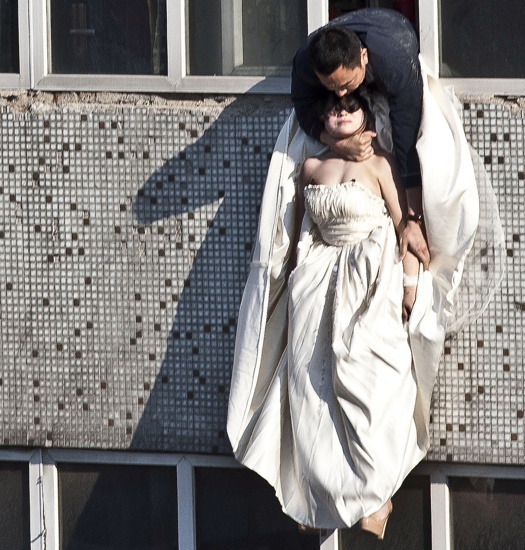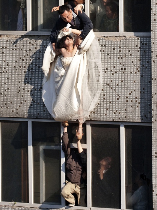 Als ihr Bräutigam wenige Stunden vor der geplanten Heirat zugunsten einer anderen diese absagte, stürzte sich Li Wan aus einem Haus in Changchun, China. Der dort arbeitende Guo Zhongfan konnte sie aber festhalten und mit vereinten Kräften wurde die junge Frau gerettet. Ich finde das toll. – Kein Ritter in einer glänzenden Rüstung, nur ein Mann, der zur rechten Zeit am rechten Platz war und das Richtige tat.